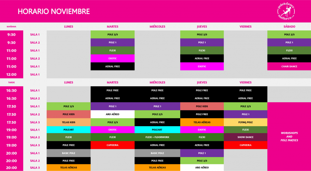 Pole & Dance Mallorca es un DANCE STUDIO exclusivo para mujeres en dónde podréis descubrir o perfeccionar diferentes modalidades de deporte como el Pole Dance, diferentes estilos de baile, danza y defensa personal en un clima fantástico lleno de diversión y arte en movimiento.